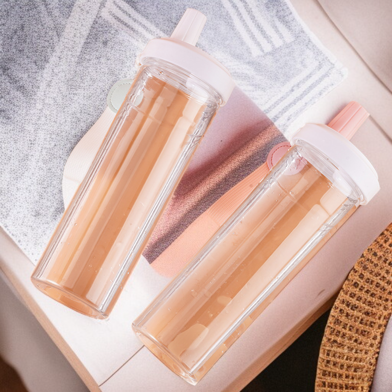 كوب ماء شفاف قابل للحمل بيد للطلاب، عالي الجمال، مناسب للصيف