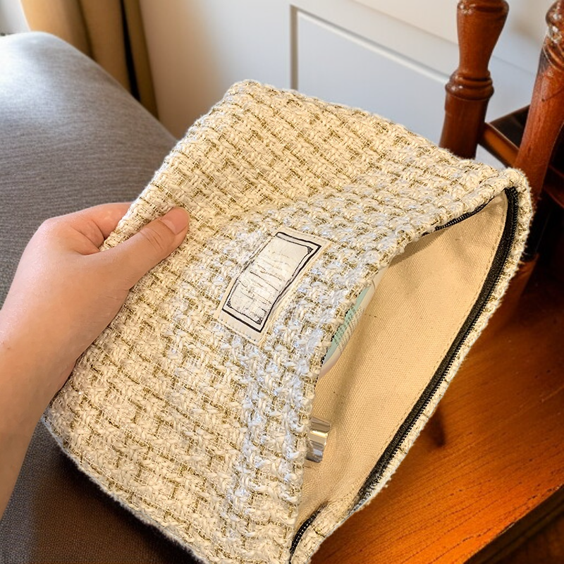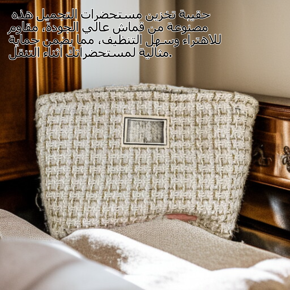 ● حقيبة تخزين مستحضرات التجميل هذه مصنوعة من قماش عالي الجودة، مقاوم للاهتراء وسهل التنظيف، مما يضمن حماية مثالية لمستحضراتك أثناء التنقل. ● تصميم داخلي واسع بسعة كبيرة يسمح بتنظيم جميع أنواع مستحضرات التجميل والإكسسوارات بسهولة، لتلبية احتياجاتك اليومية والسفر. ● تحتوي الحقيبة على جيب بسحاب داخلي، ما يوفر مساحة إضافية لتخزين الأدوات الصغيرة بشكل آمن ومنظم، ويمنع فقدانها أو اختلاطها. ● أسلوب عصري وبسيط يناسب جميع الأذواق النسائية، كما أن تصميمها العملي يجعلها مثالية للاستخدام في المنزل أو أثناء السفر. ● خفيفة الوزن وسهلة الحمل، توفر الراحة والمرونة في حمل مستحضراتك أينما ذهبت دون عناء أو فوضى.
