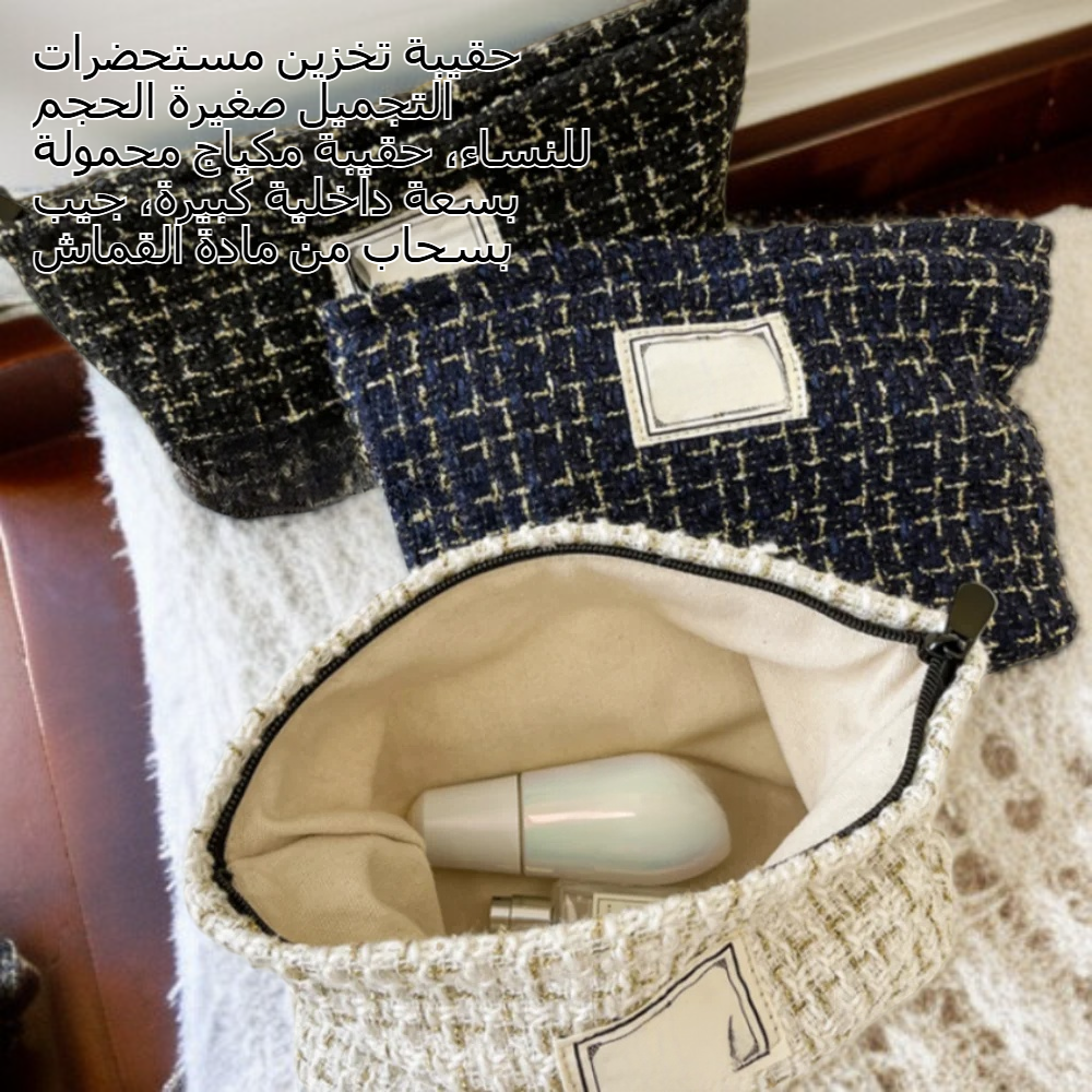 حقيبة تخزين مستحضرات التجميل صغيرة الحجم للنساء، حقيبة مكياج محمولة بسعة داخلية كبيرة، جيب بسحاب من مادة القماش